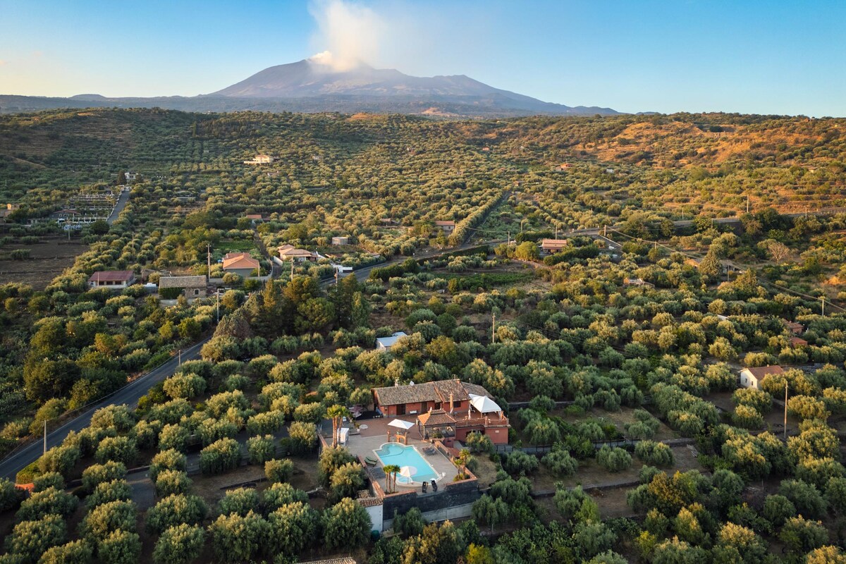 Trascorri momenti indimenticabili in questa Villa alle pendici dell'Etna, a stretto contatto con la natura, in completo relax. Avrai la possibilità di dormire ai piedi dell'Etna, che con i suoi 3340 mt di altezza è il vulcano attivo più alto d'Europa, e se sarai fortunato, potrai ammirare giochi di fumo ed eruzioni vulcaniche !!!!!!!!! Potrai inoltre visitare Taormina, Catania, fare escursioni sull'Etna o passeggiate in Mountain-Bike.