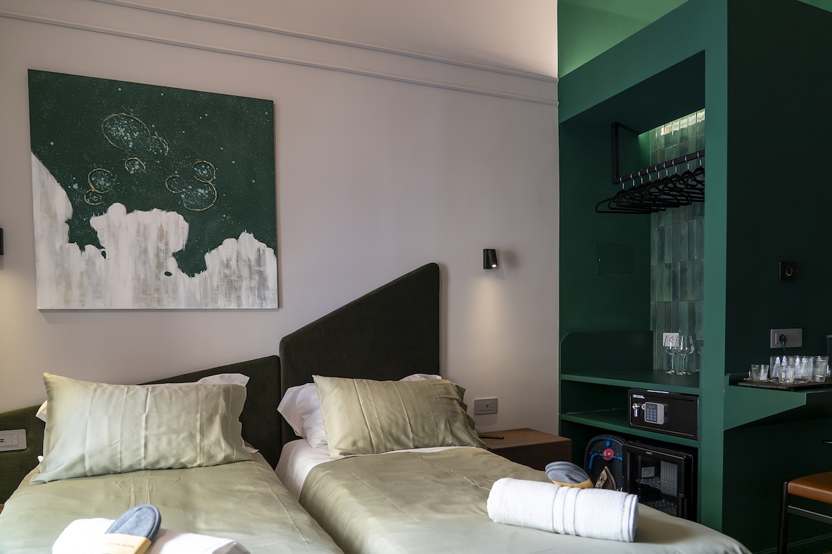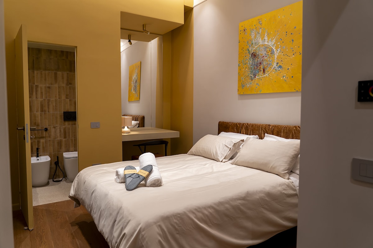Seven homes, one soul, in the heart of Naples. A few steps from the National Archaeological Museum, inside an elegant historic building in Via Santa Teresa degli Scalzi 107, is a refined collection of seven unique accommodations — suites, rooms and apartments — each with their own personality, but all united by a warm, contemporary and authentically Neapolitan style.