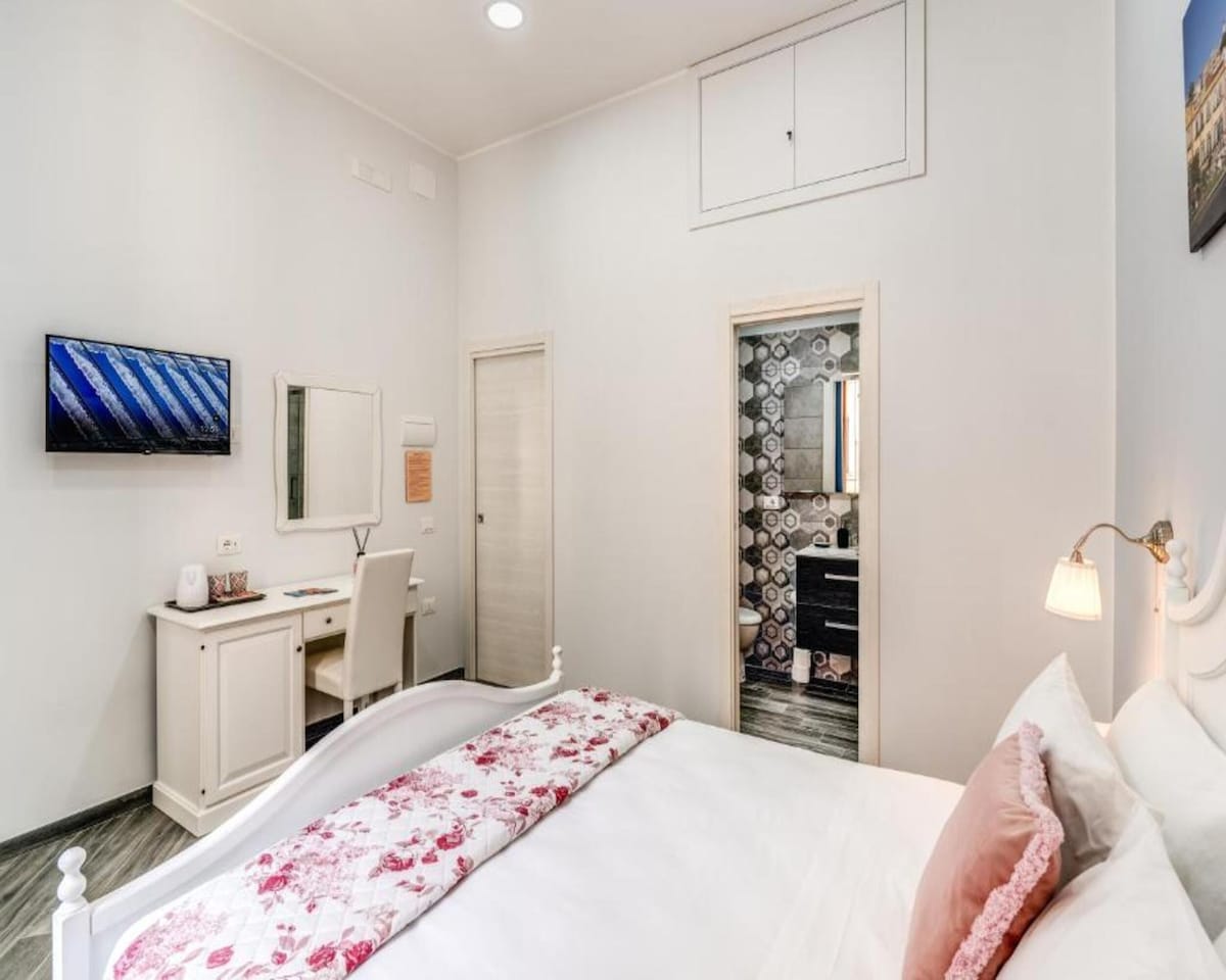Antica Dimora Deluxe guest house in Naples offers 65 sqm and accommodates up to 6 guests. There are 2 bedrooms: one double and one quadruple with a double bed and double sofa bed, plus 1 bathroom with shower, bidet, and essentials. Enjoy 3 private balconies, one overlooking Galleria Umberto I, air conditioning, high-speed Wi-Fi ideal for video calls, TV, workspace, mini fridge, wardrobe, elevator, and breakfast room.