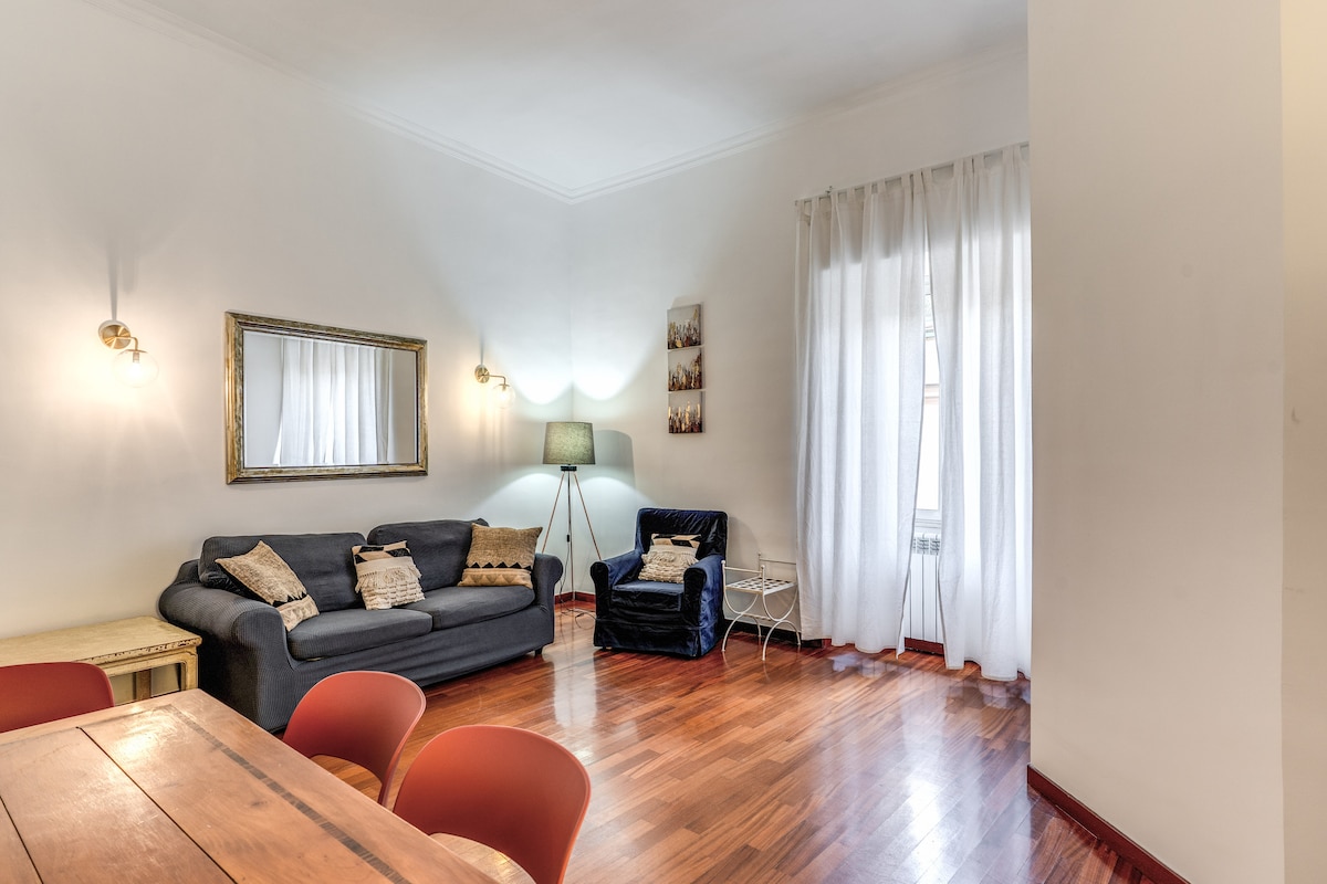 This bright and spacious loft apartment was recently entirely renovated. A wide window wall faces the Tiber river allowing a lot of sunlight to come in. There are beautiful Tuscan cotto floors and modern design furniture. There is a new fully equipped kitchen with a Nespresso coffee machine, air conditioning, heating system with adjustable temp, unlimited wi-fi, a washer/dryer, a bathroom with tub and shower. The flat sleeps four persons in a king size bed and a comfortable king size sofa bed