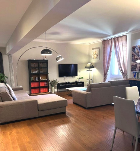 Just steps from the Duomo, this elegant apartment offers a stunning view of Brunelleschi’s iconic dome. Located in the heart of Florence, it combines tranquility and comfort. It features two double bedrooms, each with a private bathroom, a spacious living room with a dining area, and a fully equipped kitchen. Ideal for families or friends, it guarantees a refined stay with excellent cleanliness.