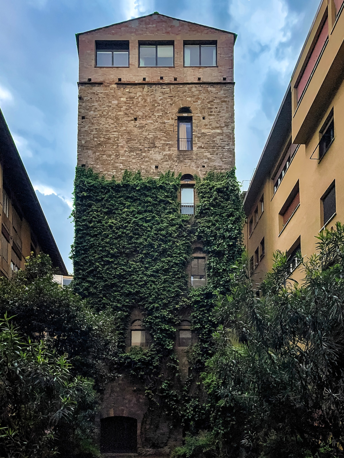 The apartment is in a 12th century medieval tower, a unique and protected building in Florence, renovated in the postwar by famous Italian architect Giovanni Michelucci and recently renovated by Florentine top architect, Luigi Fragola. The location is fantastic and just 50mts away from Ponte Vecchio in a quiet neighbourhood with great small Italian restaurants. It can accommodate up 4 people and it is the perfect choice for couples and small families. It is in the 4th floor and has elevator. We offer daily cleaning service upon request. We offer complimentary Nespresso coffee capsules, Italian mobile phone with prepaid card, HD TV + apple TV + Netflix and Bluetooth wireless speakers. Maurizio or Daniella will be waiting for you in the apartment to help you out with your check in an explain how everything works. The tower is in the Oltrarno neighborhood, steps away from Ponte Vecchio, and in one of the most exclusive and elegant quarters of the city. Fine dining, shopping, and many historic attractions are within walking distance. It is 10 minutes walking distance from the central train station and 20 minutes away from the airport. PARKING: You can park your car in Parking Lungarno just across the street. Our guests have a special daily rate from Euros 28. HISTORY OF THE APARTMENT The apartment is in a unique medieval tower in the historical center. The only tower in Florence with a private garden in front. Actually the building is composed of two different towers, Torre dei Ramagliani and Torre Belfredelli, build in the 12th century. Each tower was built by two opposing families, Ramaglianti an important Ghibelline family and Belfredelli another prominent family but Guelph. During the German retreat, Florence was declared an “open city”, thereby avoiding major war damage. In 1944, the retreating Germans decided to blow up the bridges along the Arno linking the district of Oltrarno to the rest of the city, thus making it difficult for the British troops to cross. However, at the last moment Hitler ordered that the Ponte Vecchio must not be blown up, as it was too beautiful. Instead an equally historic area of streets directly to the south of the bridge, including part of the Corridoio Vasariano, was destroyed using mines. Since then the bridges have been restored exactly to their original forms using as many of the remaining materials as possible, but the buildings surrounding the Ponte Vecchio have been rebuilt in a style combining the old with modern design. The only standing buildings where Torre dei Ramagliani and Torre Bellfredelli that survived, not only World War II but nine centuries of history.