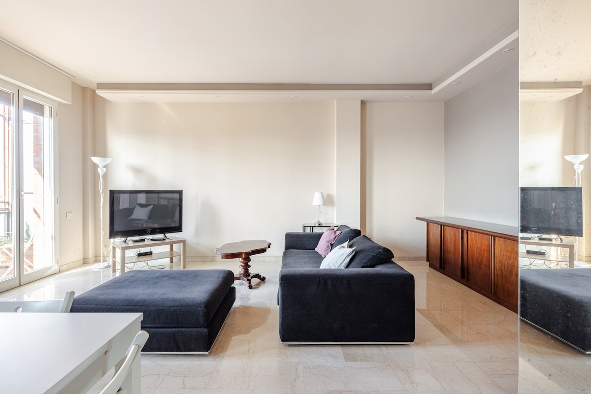 Comfortable apartment with semi-independent entrance, close to the center of Bologna. Easily reachable by car (no restricted traffic zone / possibility of parking nearby) or by public transport (bus 33 Porta San Mamolo or bus 29 under the house). Two large double bedrooms, two bathrooms, bright living room with TV and smartworking station, equipped kitchen (microwave, dishwasher, fridge etc.), washing machine, air conditioning, terrace and balcony. Flexible check-in.