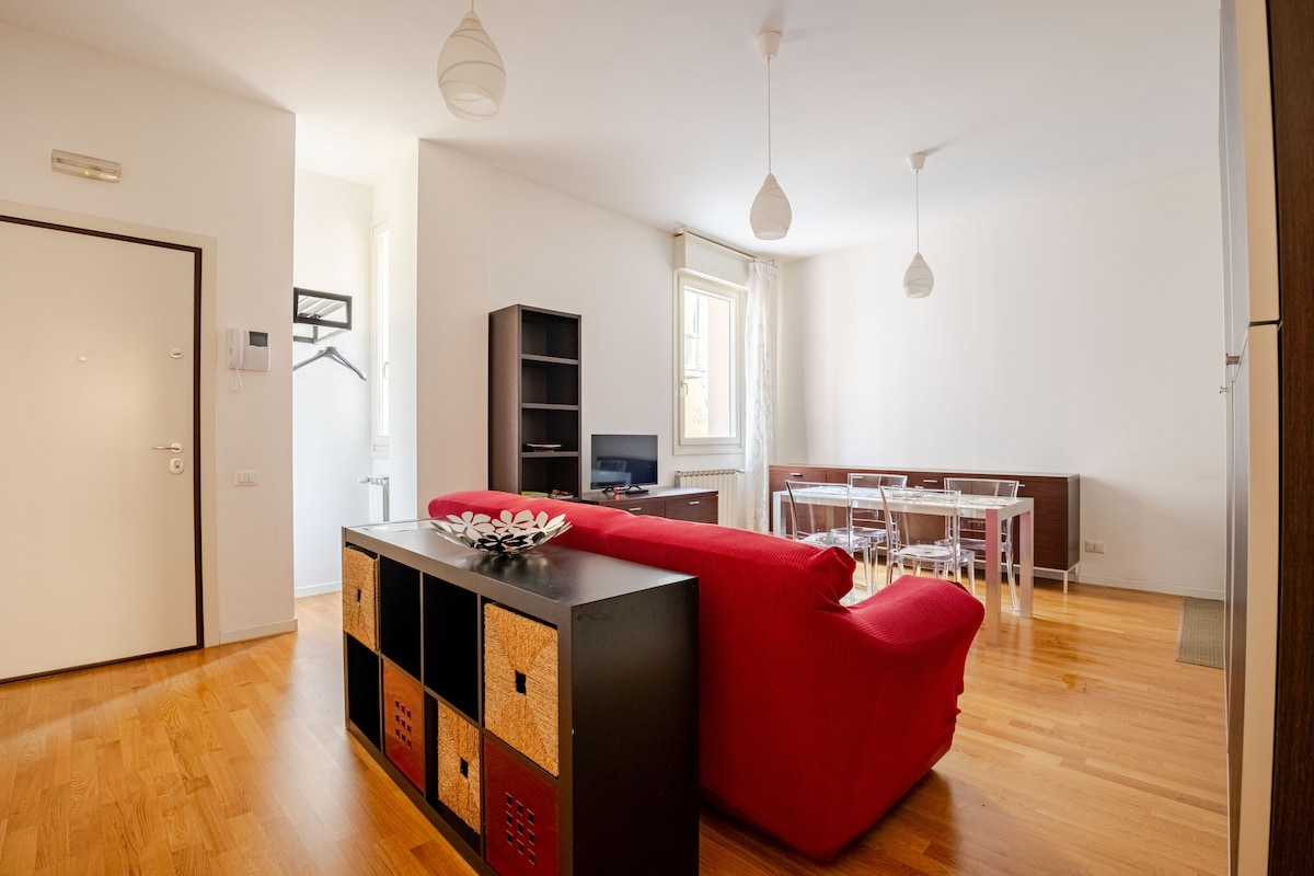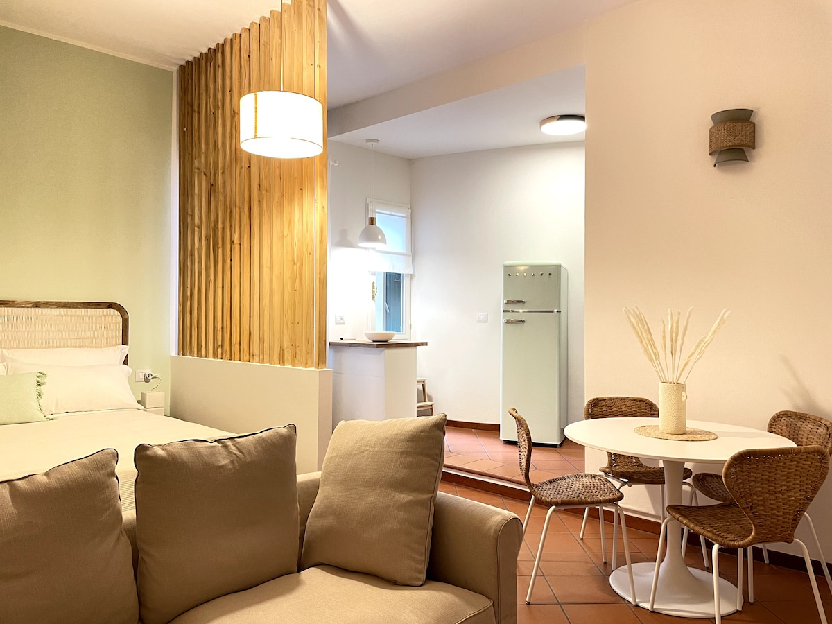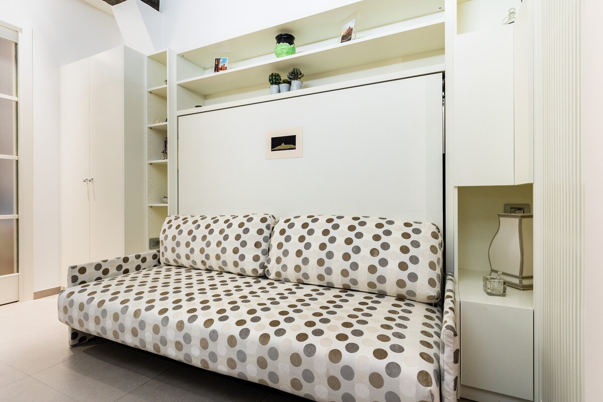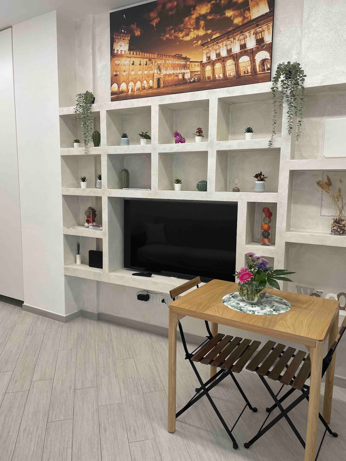 Monolocale luminoso e arredato con cura, dalle linee semplici e dai toni pastello. Il pezzo forte poi è la sua posizione: nel centro del centro: the apartment is located in one of the oldest and fascinating areas of the city, in the center of the most famous food market in Bologna, surrounded by many little bars and restaurants. It is an area full of "Italian life", and the market opens early in the morning, so sometimes there can be some noise, as in all the historical center of Bologna.