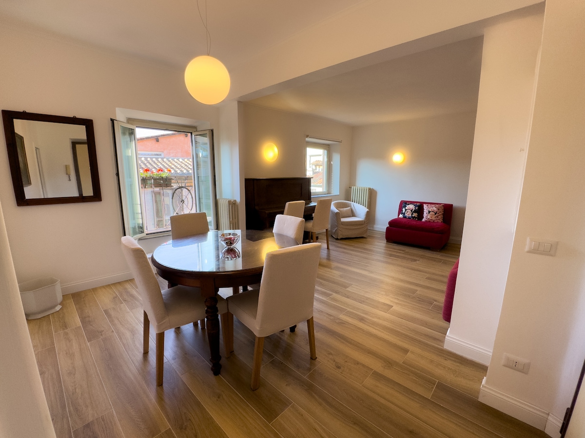 Spacious apartment in Piazza Campo de' Fiori. The perfect base for exploring the historic center, you'll find yourself immersed in the vibrant atmosphere of one of Rome's most picturesque squares, with the market during the day and lively ambiance at night. The apartment is on the ground floor, One bedroom with living room (same space), One bathroom, a fully equipped kitchen, and an amazing sunny garden, all renovated. House design is combined with modern furniture and antique Roman arches.