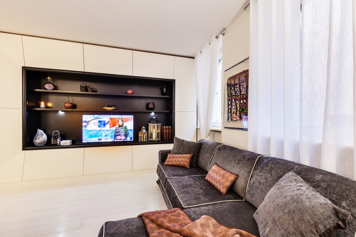 - Panoramic loft in one of Rome's best streets just a few steps from Piazza di Spagna. - Just steps away from the main sightseeing hotspots. - Extremely well positioned and connected to all major transport systems. -Gym a few steps away. - Electric window shades. - Very quiet. - Design furniture and accessories. - Very safe. - Large windows. - Sunny terrace with large sofas and dining table. - Chair lift for luggage. - Possibility of hiring a private driver to and from the airport.