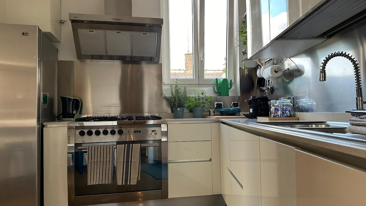 Appartamento elegante e luminoso di 70 mq, recentemente ristrutturato , arredato con mobili su misura. Situato in un palazzo silenzioso nel cuore di Trastevere, unisce comfort moderni e charme romano. Dispone di una camera da letto matrimoniale con letto king-size 180x200 cm, un ampio soggiorno con divano letto e TV, cucina moderna attrezzata, studio per smart working, bagno con doccia e pratici armadi.