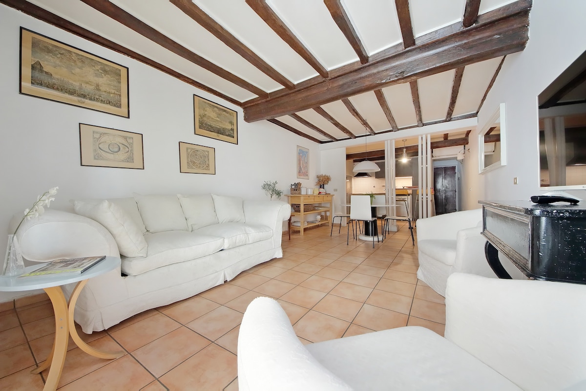 A quiet retreat in the center of the city. You can begin your unforgettable journey through history by staying in a lovely apartment located on a convenient second floor without an elevator of an ancient building dating back to the 1400s. The setting is truly unique and quaint. Windows on the inner courtyard allow you to fully enjoy the central location in an intimate and quiet setting. Attention to detail and care for the furnishings lend charm and elegance