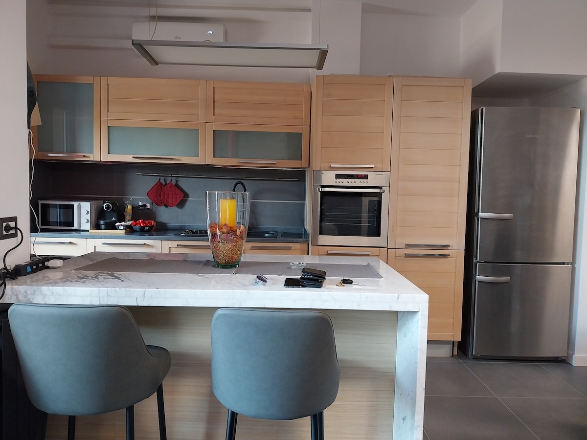 Stunning, fascinating and elegant luxury penthouse with high wooden ceilings and design furniture in the heart of the centre of Rome, few meters from Piazza Navona and Via Giulia. The 120 sqm penthouse is set in a typical building with lift and is composed of a wide living room with cinema projector and design sofas, 4 wide door windows opening on a small fancy balcony with view and bouganville, full design kitchen, dining area, two bedrooms, two bathrooms, one with shower and one with bathtub.
