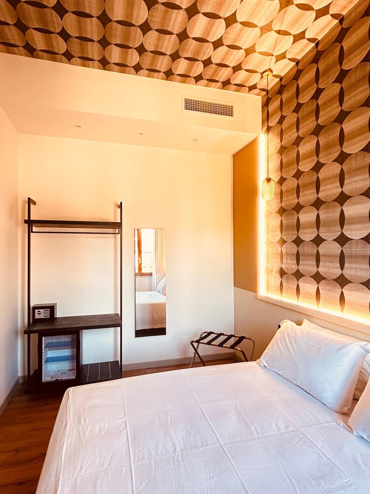 Camera matrimoniale nell'elegante boutique di poche camere nel centro storico di Roma, tra Colosseo e Termini vicino a Fontana di Trevi e Piazza di Spagna. Roman Holidays Boutique si trova nel quartiere Monti, nell'edificio del 1884, a pochi minuti dalla Stazione Termini e principali attrazioni turistiche, facilmente raggiungibili a piedi. L'ambiente riservato con poche camere dall'arredamento raffinato e moderno con jacuzzi all'interno della camera.