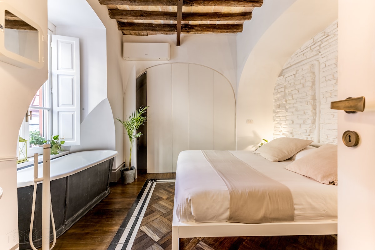 Experience Rome like a local from this bright studio apartment located in the heart of the city, 250mt from the Colosseum and the Roman Forum. Our newly renovated urban-chic studio offers a cosy and modern space to unwind and relax, and will be your base to explore Rome - all the major attractions are within walking distance! What you will love: - Fully renovated in 2022 - Upscale contemporary decor - 1800s brick ceiling - Historical building - Traffic-free street, very quiet
