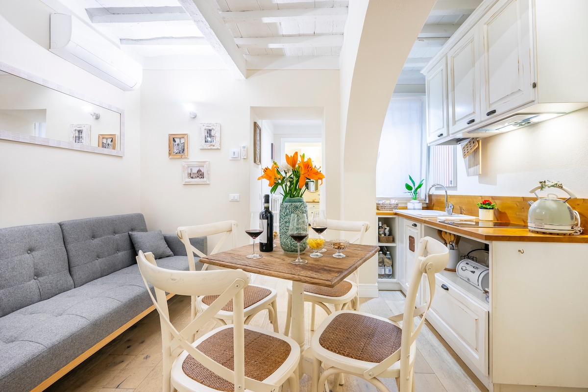 The apartment is located in a quaint neighborhood of Florence's historical city centre, just a few steps away from the Santa Croce Basilica. The apartment has been recently entirely renovated. It can host from 2 to 4 guests, and is a perfect solution for both couples and families that want to make the most out of their time in Florence. For larger groups check availability of the twin apartment, Olive House - ground floor. Parking available nearby at €25 per day. Certified Covid sanitation.