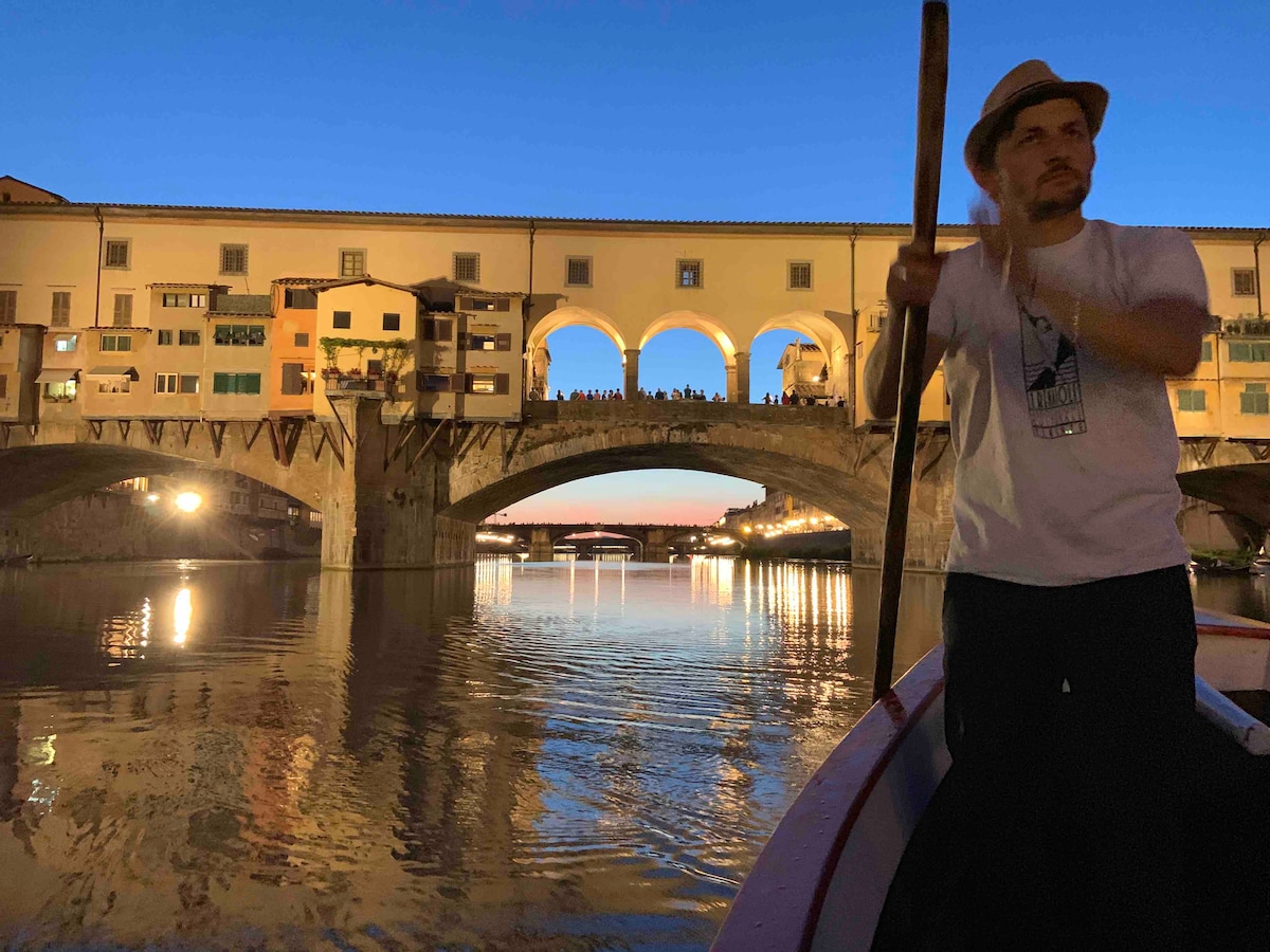Decorated with ornate elegance, the apartment exudes an air of grandeur. Touches of white Carrara marble and stone floors add a richness to this bright and open space. Entering through a large stone archway into the grand foyer, your eye is immediately drawn to the captivating views of the arno river. Magnificent stone columns lead into the large living room of the apartment. Furnished with a combination of antiques and modern fixtures, this room offers a wonderful space to entertain at home while enjoying the breathtaking views of the city. Just off the living room you will find the fully equipped professional kitchen. A spectacular stone mantle serves as the hood for the stove and makes an elegant statement in this lovely cooking area. The main bedroom is completely spacious and well lit, the second bedroom is smaller and doesn't have the river view but is indeed very cozy. Both have queen beds and full marble ensuite bathrooms. The combination of antiques furnishings with modern design elements is truly a step into Italian Luxury. This fantastic apartment offers you the chance to immerse yourself into the heart of ancient Florence. The prime location is a perfect starting point for exploring all of the city’s most notable landmarks. The magical views from all rooms of this accommodation surround you in the beauty of Florence all day and night. There is a supermarket conveniently located 150 meters from the apartment. The Ponte Vecchio is 200 meters away and in a 5 minutes walk, you can reach the city center. The water boiler sometimes needs to be restarted. It's outside of the kitchen, there in an on/off button, you just need to turn it on and off. If all the utilities are on at the same time the light may go down, the breaker is next to the main entrance, inside the apartment. I also work for a hot air balloon company, if you are up for some adventure, you just need to ask me. The apartment is in the heart of ancient Florence—perfect for exploring the many nearby landmarks. You won't need a car, everything is at walking distance. In case you will arrive with a rented car, there is a parking next to the aparment that charges 35eur/day.