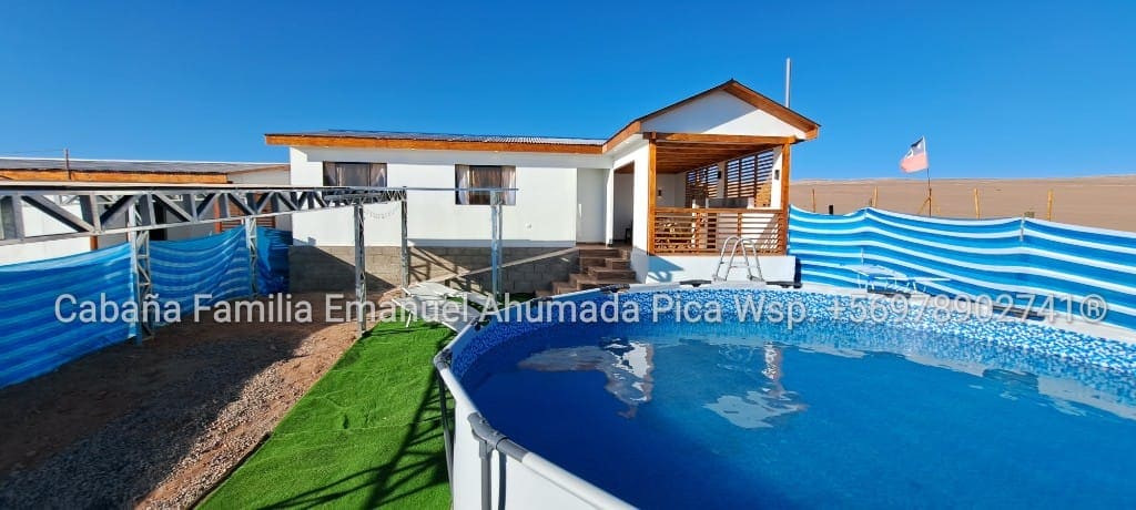 🌵Contamos con una acogedora y rústica cabaña representativa a la zona norte de Chile, con 3 habitaciones, dos baño, cocina, quincho y parrilla , piscina techada, cama elastica, taca taca, y juegos para niños. Lugar para hacer fogatas 🔥 y mirar un bello cielo estrellado y una maravillosa puesta de sol 🌅, a 5 minutos de la cocha (aguas termales terapéuticas) lugar ideal para relajarse y para quienes les gusta disfrutar la naturaleza y alejarse del ruido de la ciudad.🌵