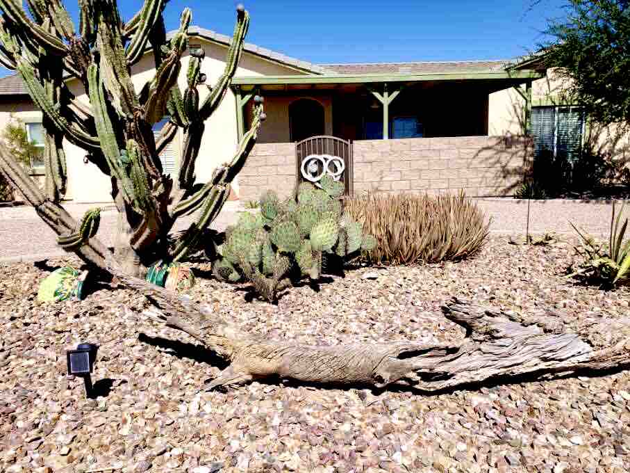 Welcome to our charming 3 bedroom home in Arizona City. Located in a golf course neighborhood and only 15 minutes to Casa Grande with many dining and shopping options. The house is a perfect central location to Phoenix and Tucson (one hour each way). Enjoy the beautiful Arizona sunsets in our backyard that has a large patio, bistro lights, and water fountain. Our house has an open floor plan with a spacious great room, large couch, kitchen, and desk space that makes for a comfortable stay.