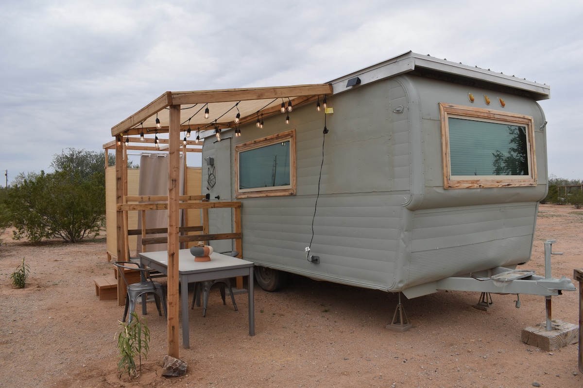 Welcome to the Saloon nestled in Tin Town. This 1 queen and one single bed charmer features memborabia from many Old Western Stars and repurposed building materials from the Old Tucson movie studio. Walk to the UofA, 4th Ave., and Downtown in just minutes, or explore the property of Tin Town with indoor and outdoor grounds, its museums and unique antiques. This space is a one of a kind way to stay in Tucson. One block to the Tucson Street Car. Check out our Circus Wagon on Airb&b as well.
