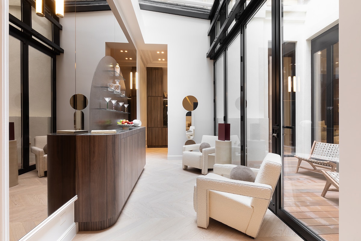 Welcome to My Skydome, a unique place in the heart of the upper Marais. This 200 m2 flat is the result of an ambitious project by an Italian architect and a Parisian decorator to create an exceptional living space. The glass roof covering an 1896 Parisian courtyard is enhanced by the use of original materials such as wood and stone. After a day of sightseeing in the department stores and museums of Paris, the 200m2 My Sky Dome is the perfect place to relax and recharge.