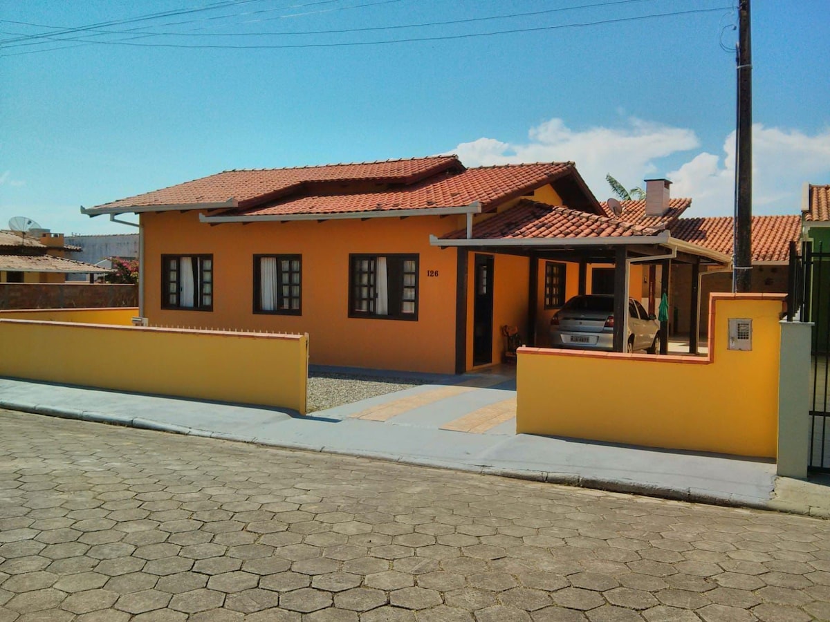 Uma casa simples e aconchegante a apenas 50 passos da praia! É preciso apenas atravessar a rua! FICA NO SEGUNDO PISO, ACESSO POR ESCADAS!!! Casa limpa, super arejada. Dispõe de uma varanda ampla com churrasqueira portátil! A casa acomoda até 8 pessoas! Garagem coberta, vizinhança tranquila, local seguro. Fica apenas a 1,5 km do Beto Carrero World!!! Todos os quartos tem ar condicionado! Na sala, TV com Netflix! Cozinha completa. POR FAVOR LEIA: "OUTRAS INFORMAÇÕES IMPORTANTES" (abaixo)