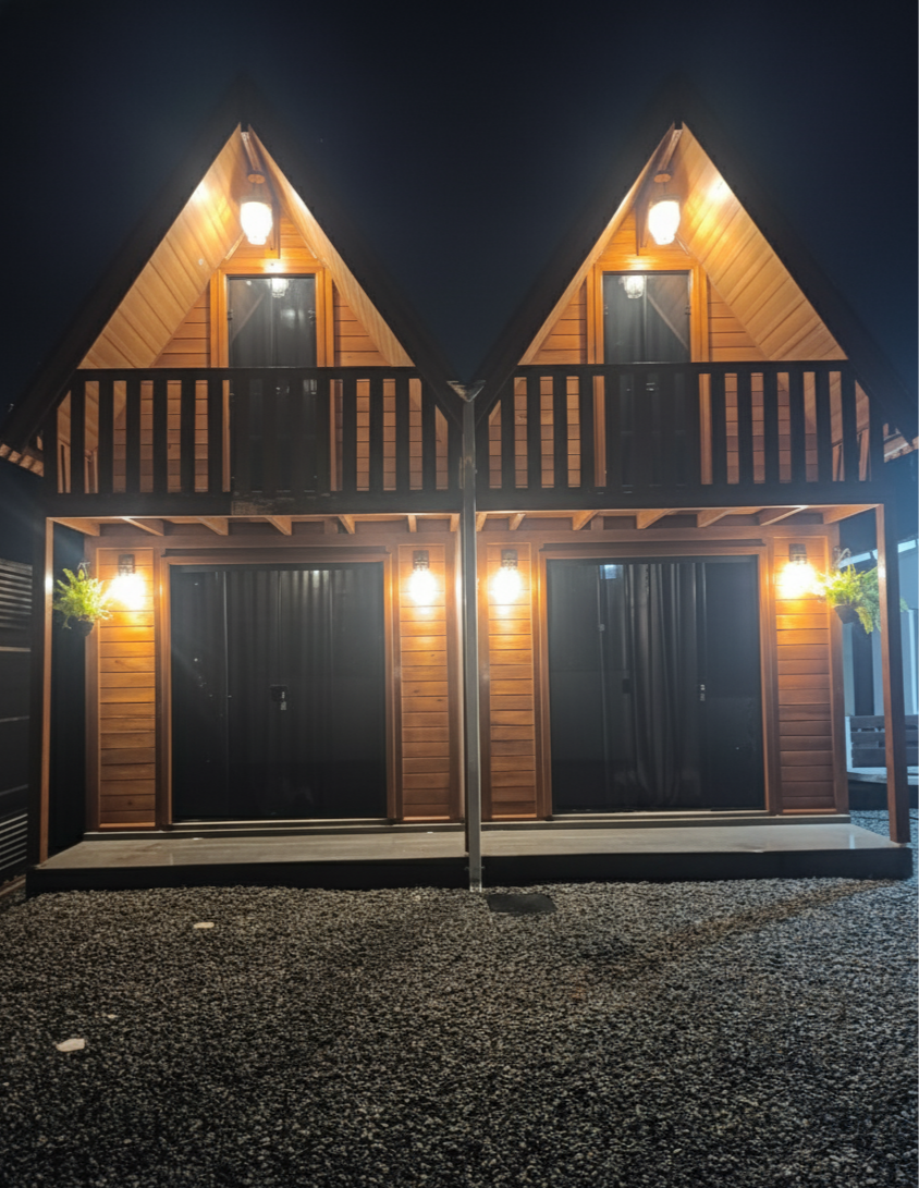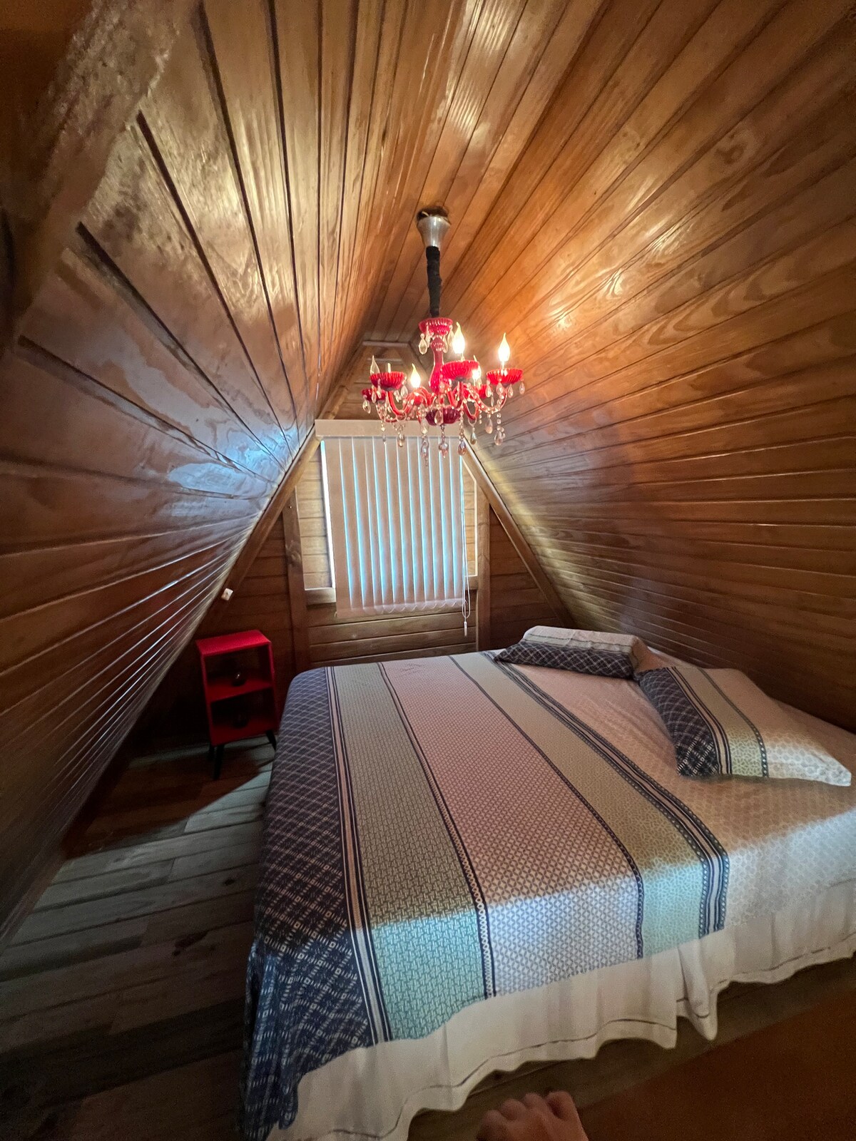 Chalé único com uma construção em madeira que oferece um ambiente bastante acolhedor. A sala ampla (com Tv smart) conectada à sala de jantar e cozinha, criam um espaço confortável e convidativo. No segundo andar são dois quartos de casal com sacada e ar condicionado. Além disso, o chalé conta com um banheiro e uma lavanderia prática e um espaço ao ar livre perfeito para relaxar e aproveitar momentos.