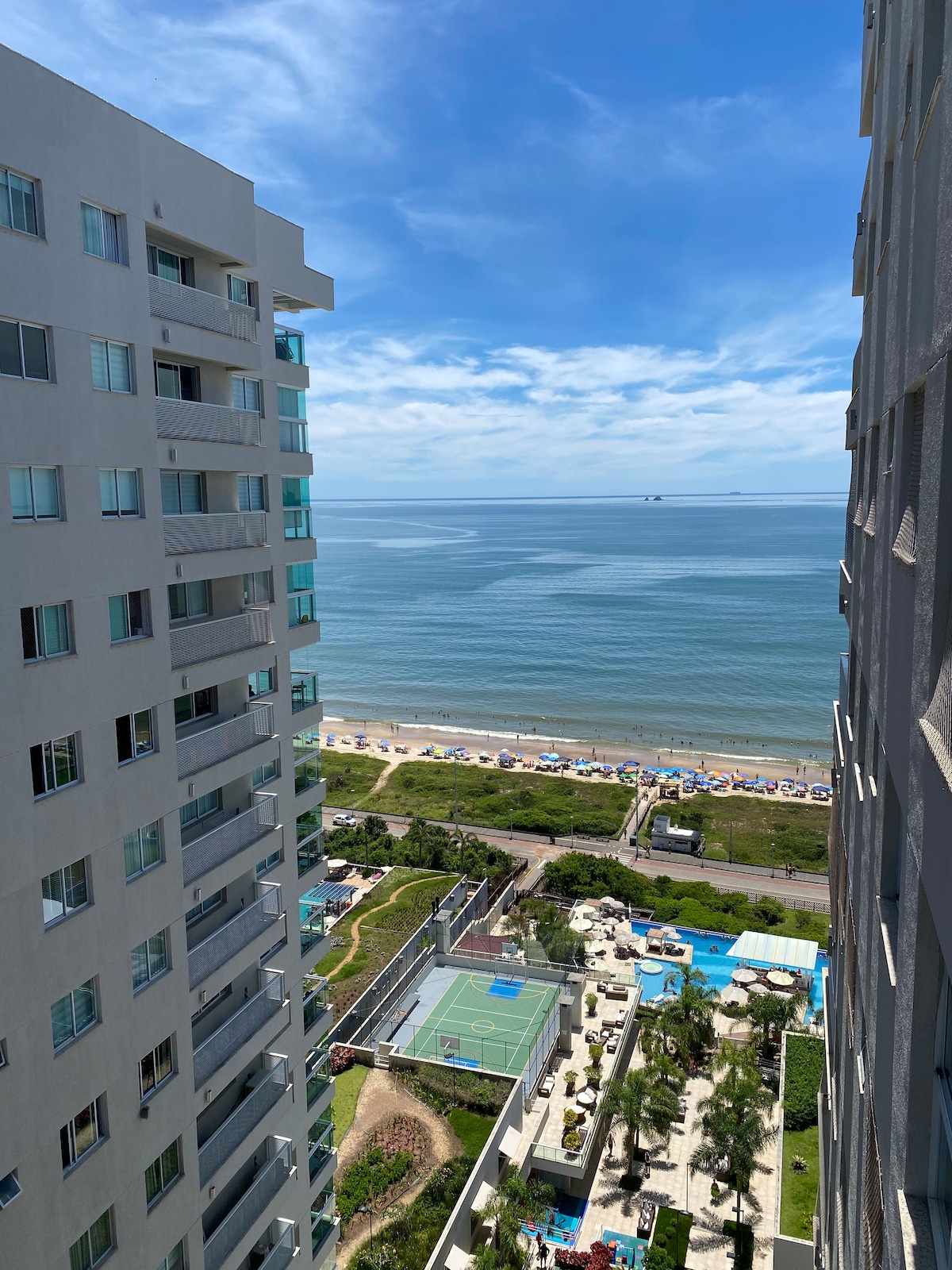 Lindo apto finamente mobiliado, totalmente climatizado. Possui 75m² com varanda fechada e vista lateral mar. Suíte com cama queen mais um dormitório com cama de casal, ambos com Smart TV. Cozinha, sala e sacada com churrasqueira integrados em conceito aberto. A cozinha é equipada com móveis planejados, fogão, forno elétrico, geladeira e microondas, além dos demais utensílios. Lavanderia com lavadora e secadora à disposição.