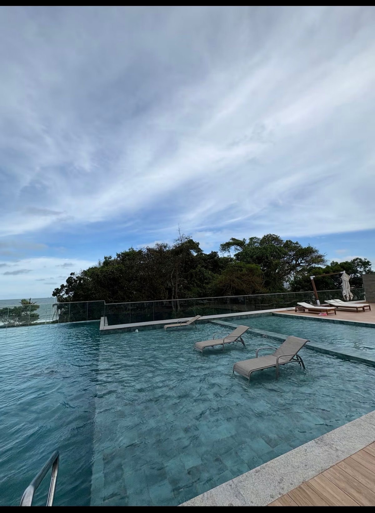 Apartamento completamente equipado (louças, panelas, toalhas de banho, travesseiros, rede, lençóis, kit praia, tv a cabo e internet) com vista pra o mar e para os morros da região. O apartamento oferece uma das melhores vistas para o pôr do sol (vide última foto da galeria tirada da janela do segundo quarto). Condomínio possui academia, sala de jogos, quadra de esporte, piscina aquecida e Minimercado 24 horas disponíveis para os hóspedes.