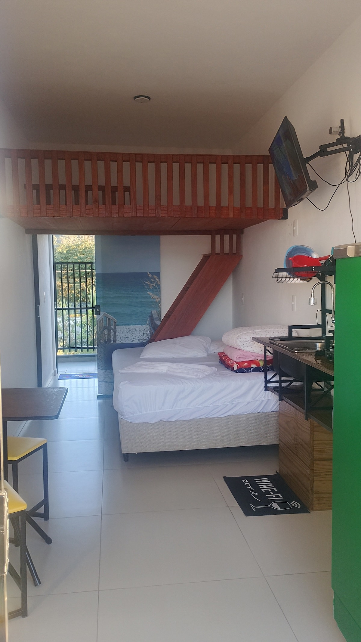 Um charmoso loft em meio à área rural, próximo à praia, perfeito para quem busca tranquilidade e conforto em contato com a natureza. Com uma banheira de hidromassagem, cama Queen ultra confortável com roupa de cama premium, ar-condicionado, e um sofá-cama que vira cama de casal, é o refúgio ideal para relaxar. O espaço é completamente independente e privativo, com uma varanda protegida, com mesa bistrô e de café, proporcionando uma vista incrível do campo. Aceitamos pets de porte pequeno.