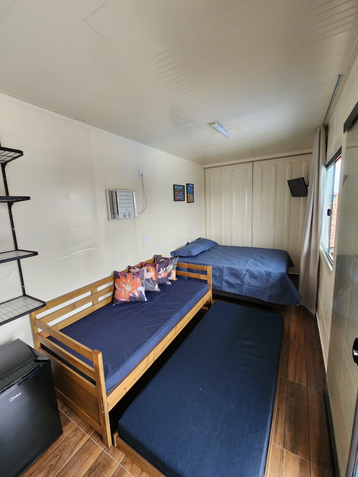 Suíte privativa em containeR, a 600 m do Beto Carrero World e da Praia Armação do Itapocorói. - Cada suíte conta com: Cama Box de Casal, Bicama de Solteiro, Enxoval completo (cama e banho), Smart TV, AC quente e frio, Frigobar e Banheiro. Contamos com uma cozinha totalmente equipada e compartilhada, para que cada hóspede possa fazer suas refeições. - Cozinha com: Fogão de duas bocas, forno, micro-ondas, cafeteira , chaleira, jogo de panelas e louças, e utensílios em geral.