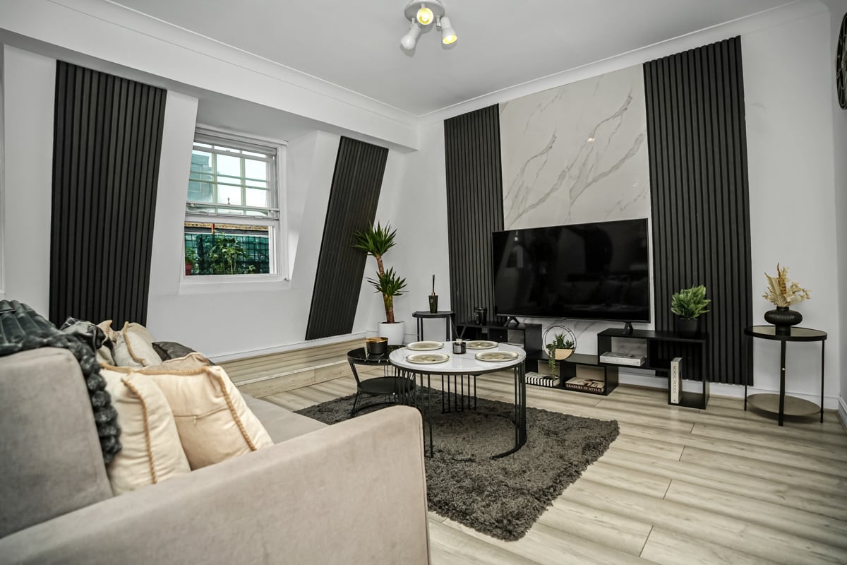 Our one-bedroom flat in Zone 1 is in a prime central London location. The bedroom features a comfortable UK double bed, and the living room includes a sofa bed, making it ideal for families, couples, or groups of friends. Just a few minutes’ walk from Piccadilly Circus, Soho, and Leicester Square, you’ll be in the middle of London’s best shopping, dining, and entertainment. PLEASE READ FULL DESCRIPTION BELOW - Scaffolding outside the building is affecting the Wi-Fi.