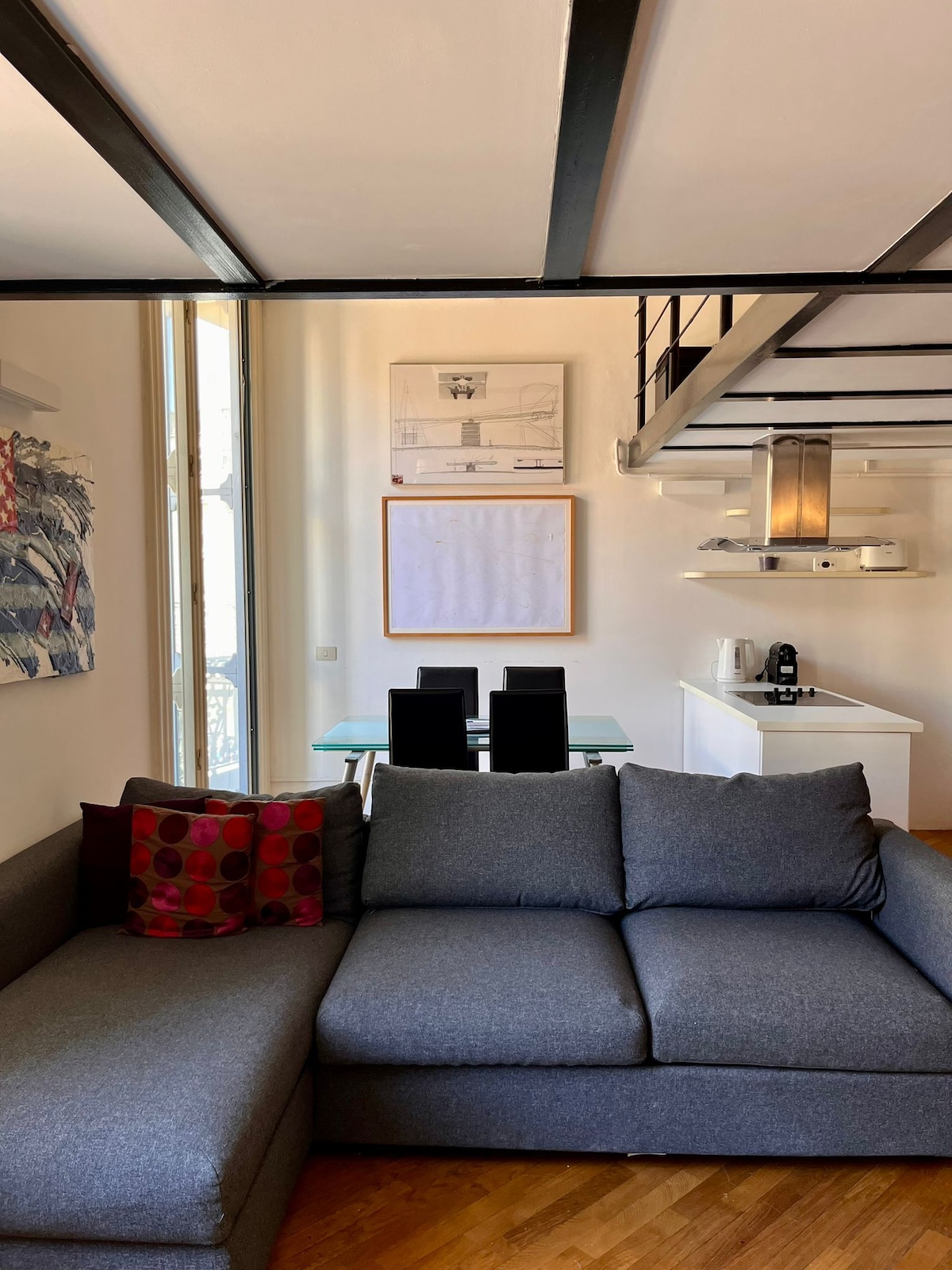 Fully refurbished, in a historical building, my home is a bright open-space attic, with a private bathroom, kitchen, double bed, a large sofa with a projector+home theatre system (Sonos), air-con (Daikin), and an office corner; It’s a quiet & bright penthouse despite being in the city's heart. It is just 2 minutes away from Cadorna station, which has subways, trams, buses, and the Malpensa Express train. It's an easy walk to the castle, the duomo, etc. You can be autonomous for check-in and out
