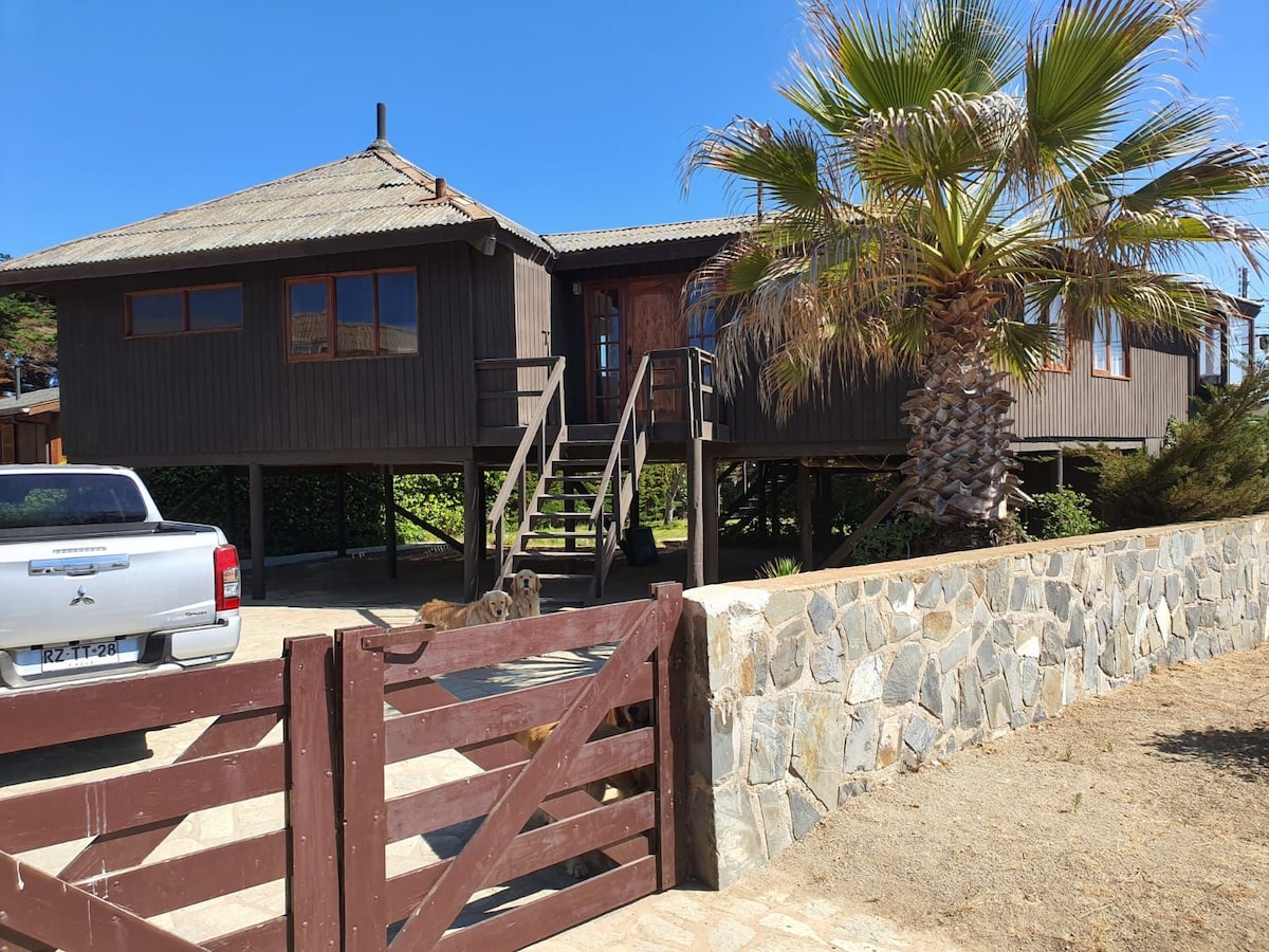 Cabaña acogedora de 2 pisos con amplia y linda vista al mar, posee jardín, quincho, estacionamiento y es pareada; se encuentra en condominio a 5 min de Pichidangui; posee 2 dormitorios independientes con baños, cerca hay supermercados, verdulerias, fruterias, etc. Caminando se llega a la playa de 6 km de extensión y de aguas limpias. Estamos próximos a la Ruta 5 y a la linda Ruta del Cuarzo. El propietario recibe y atiende personalmente a sus huéspedes debido a que vive en el lugar.