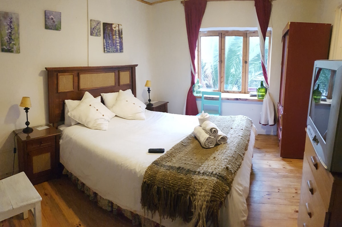 Estamos en pleno campo, rodeado de un precioso jardín y un huerto de hortalizas orgánicas. También contamos con un quincho provisto de parrilla, frigobar y todo lo necesario para hacer un asado. También hay un patio con un fogón para sentarse a tomar un vino, hacer marshmallows y ver las estrellas. Nuestras habitaciones, todas en suite, son independientes con cómodas y lindas instalaciones. Tenemos un sauna de cobro, el que recomendamos tomar antes de dormir para lograr el descanso deseado.