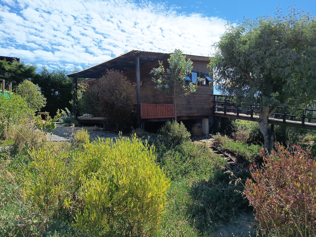 Wooden cabin with hot tub & Starlink, overlooking Cáhuil Lagoon and native forest. Secluded for silence, yet close to beaches, sightseeing, restaurants, and shops for all essentials. Features sunny terraces, skate ramp, fire pit, and gas/wood BBQs. Full cell signal and fast WiFi make it the perfect nature getaway. During winter season with rain a 4x4 car is recommended.