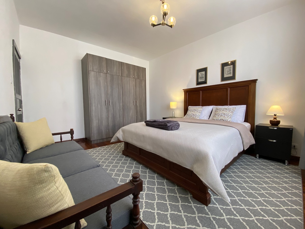 El departamento tiene Vista Espectacular, y Ubicacion Estrategica. DORMITORIO Cama Matrimonial escritorio Smart T.V. de 32" Closet BAÑO completo SALA COMEDOR 2 sofás grandes Mesa de comedor y 4 puestos COCINA Totalmente equipada CUARTO Lavadora/Secadora incluído TODO ESTA CERCA A PIE - Centro Historico - Casa de la Cultura - Universidades - Bancos - Supermercados - Farmacias - Parques - Transporte - Restaurantes - Guardias Seguridad 24/7 - Café, té,azúcar,sal,aceite, pimienta