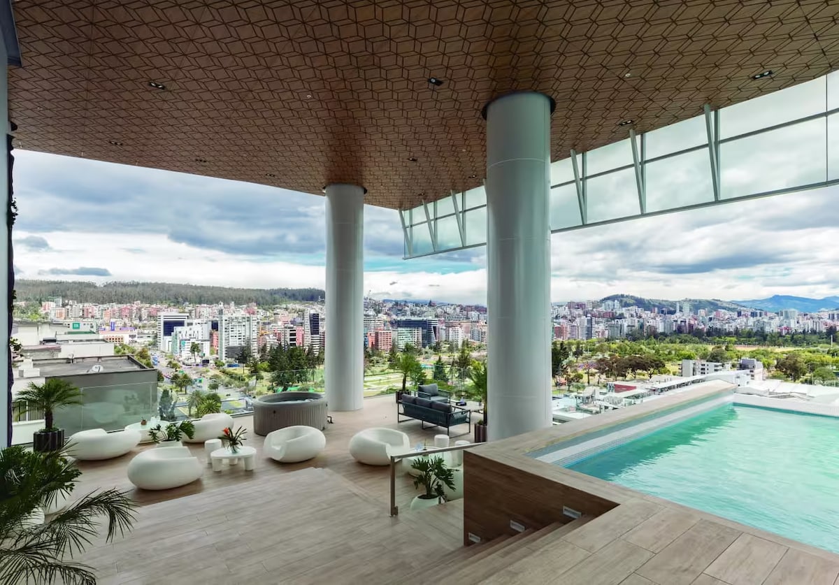 We are located 350 meters from La Carolina Park and the same distance from Metropolitan Park. From the airport, the drive is 40 minutes. Downtown Quito is 5 km away (17 minutes), and the Middle of the World City is 26 km away (40 minutes). Free parking, 24-hour reception, and free Wi-Fi. In the apartment you will find: 2 bedrooms 2 bathrooms living room equipped kitchen, dining room, washer and dryer 2 flat-screen Smart TVs 24/7 security