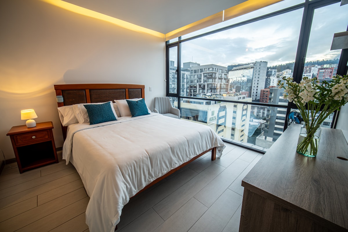 Suite lujosa en la mejor zona de Quito, excelente vista, Centro de negocios, rodeado de atractivos turísticos, restaurantes, bares, centros comerciales y parques. Cerca Estadio Olimpico Atahualpa link de otra suite https://abnb.me/CHpAJfL1eV Luxury Suite in the best zone of Quito, the business area, within walking distance of many of the touristic highlights like restaurants, bars, shopping malls and parks. The Best views I have other suite too this is the link https://abnb.me/CHpAJfL1eV
