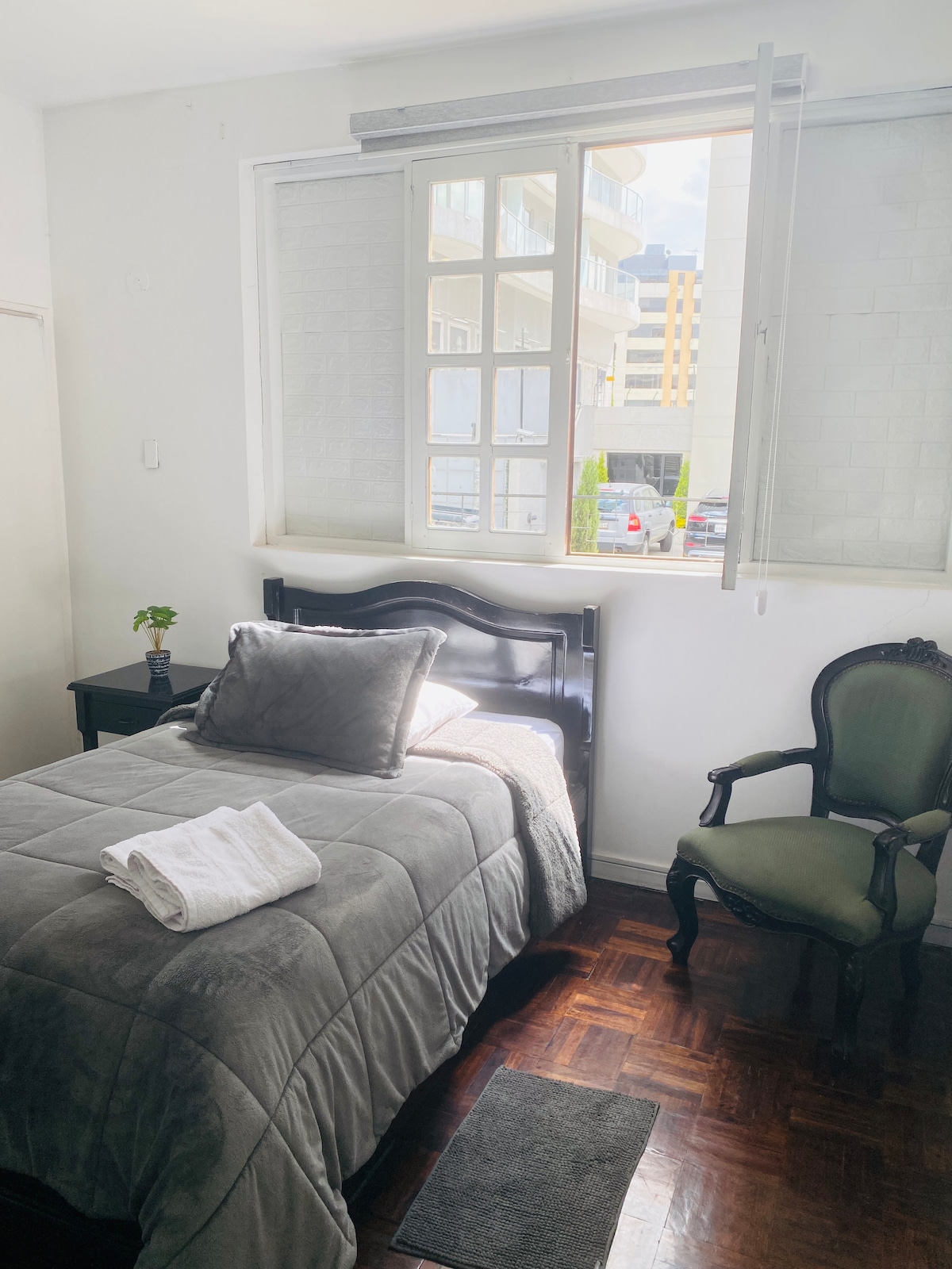 📍 Prime location in La Carolina, on Av. 6 de Diciembre, one of Quito’s most strategic areas. Ideal for business trips or short stays. Comfortable and functional private room with stable WiFi and free parking (subject to availability depending on vehicle size). Just 400 m from La Carolina Park, close to Quicentro Mall, cafés, and supermarkets. Safe, well-connected area.