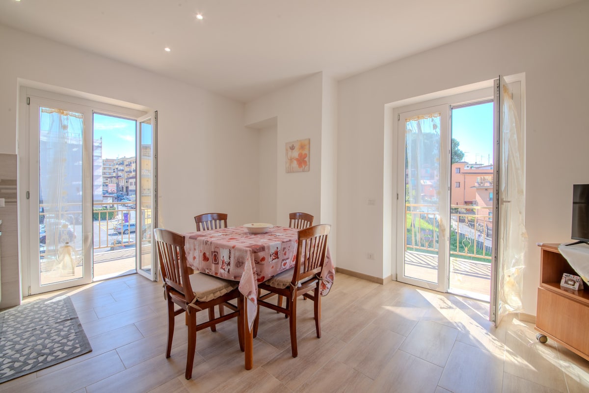 Nice entire apartment close to Unicamillus University, and "Grande Raccordo Anulare way". 6.1 km from Rebibbia metro station. TV 55" Smart, very fast wifi connection (800mb download), FTTH tecnology. Little and nice balcony. Very quite area with two nice parks in front of the house. In the room there is a big bed and 42" Tv. Nice new Bathroom with mirrors , shower 70x100, washing machine, with doubble separate sink. Smart light switch. Led ligths .