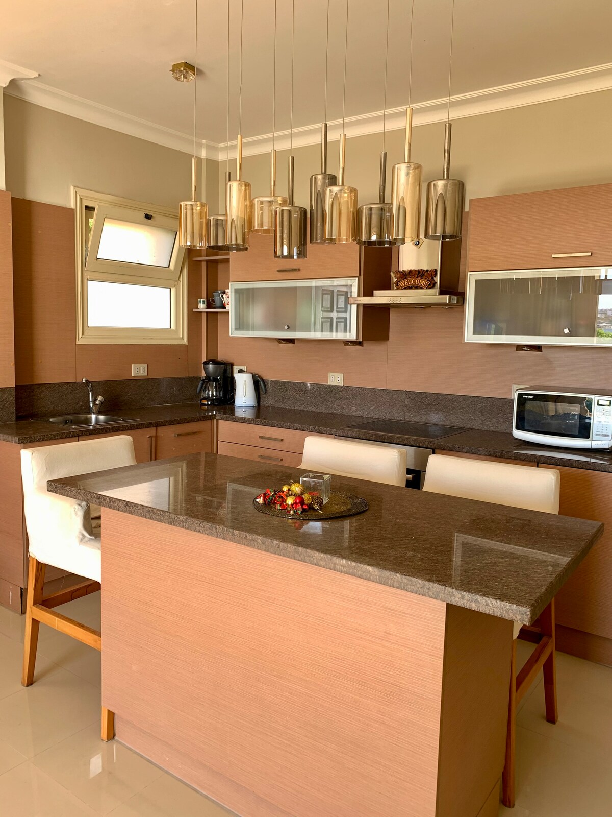This unique place has a style all its own. The views are impeccable and nothing to compare with all over the Sharm cliff Hadaba neighborhood. It is fully equipped with a built in kitchen with all new appliances, to make your stay as comfortable as possible. A lot of shopping, cafes and restaurants around, with the infamous “Farsha” 15mins walk. Another group of beautiful sandy beaches are within the same distance.