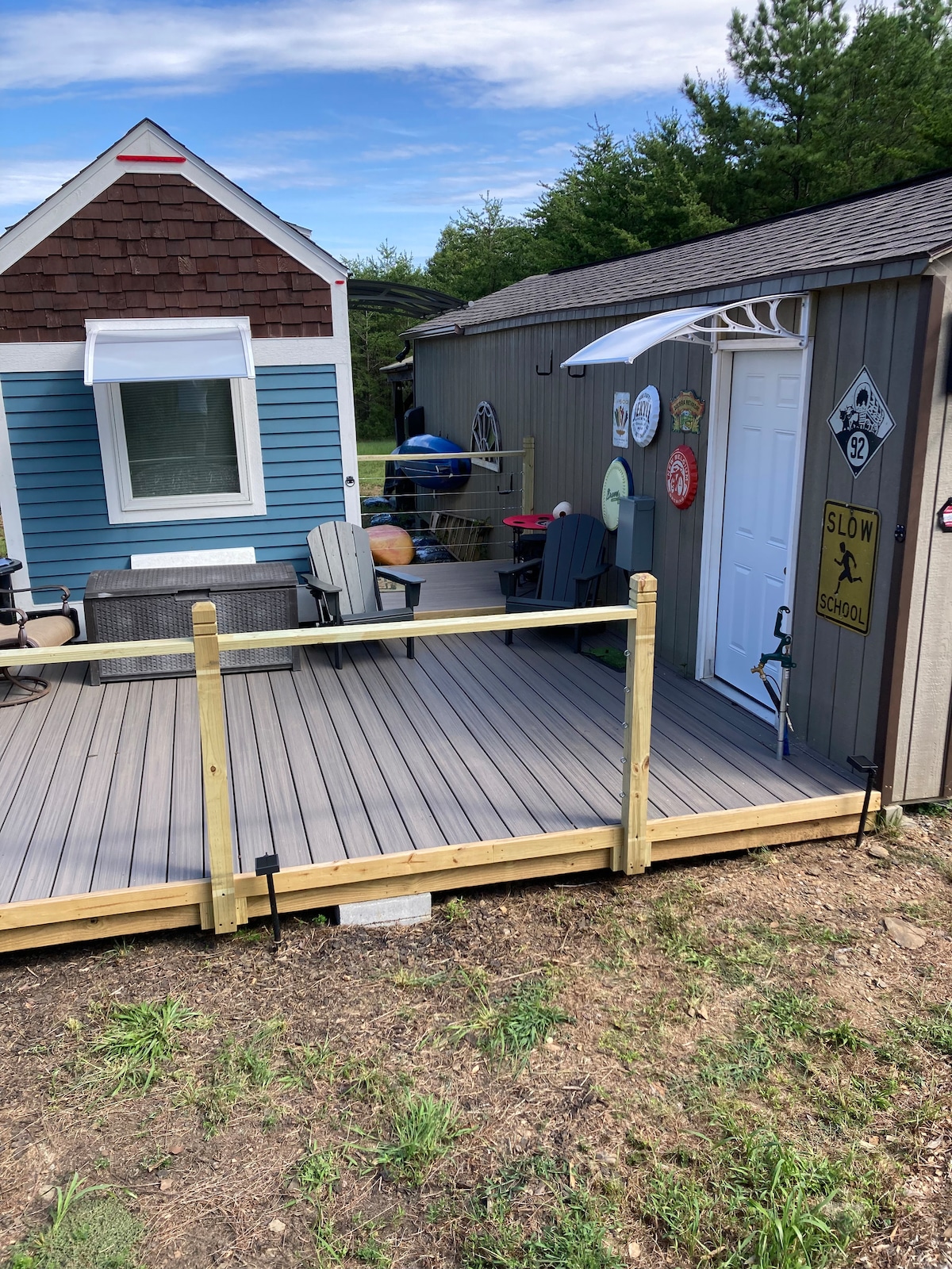 带甲板和壁炉的大独木舟小屋