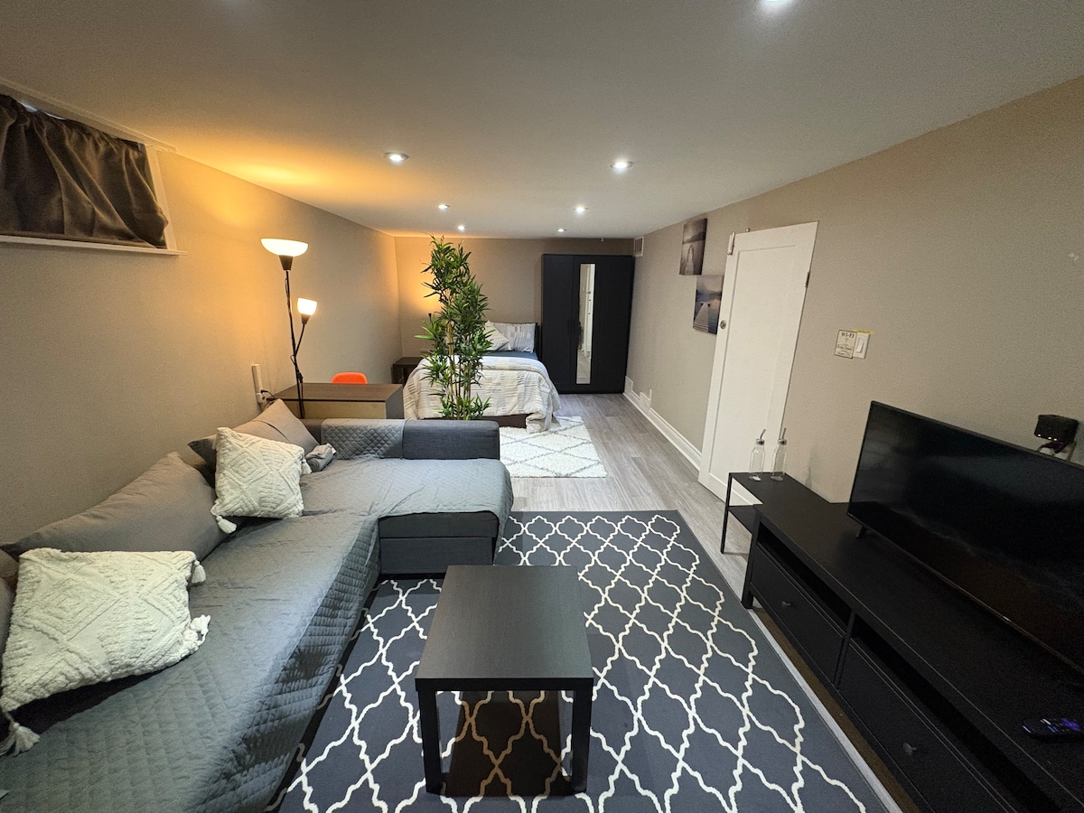 1 Bedroom • 1.5 Bathrooms • Private Entire Unit Newly renovated and quiet, just minutes from Hwy 401 and local restaurants. Highlights • Private self check-in • Driveway parking for 1 car • Private sauna • 55 Inch TV with Netflix Amenities Fresh towels, linens, tooth brushes & pastes, hairdryer, home essentials, shower essentials, and extra pillows/towels on request. Spotless home, quick replies, and your comfort guaranteed - book with confidence.