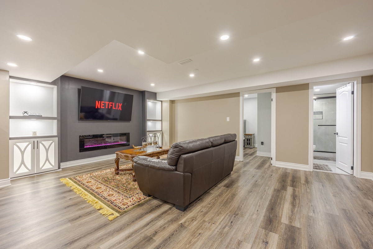 Are you looking for the perfect getaway? 😊 Retreat yourself to a Luxurious, Charming and Modern Suite with a splash of glam.✨ Perfect for couples, families or business trips. Enjoy the Fireplace with a glass of Cabernet Sauvignon🍷Perhaps you would also like to partake in a game of pool on our custom pool table 🎱, or take a hot rainfall shower in a delightful Stone Spa Shower💦. But, most importantly, our place is yours to relax and unwind😊