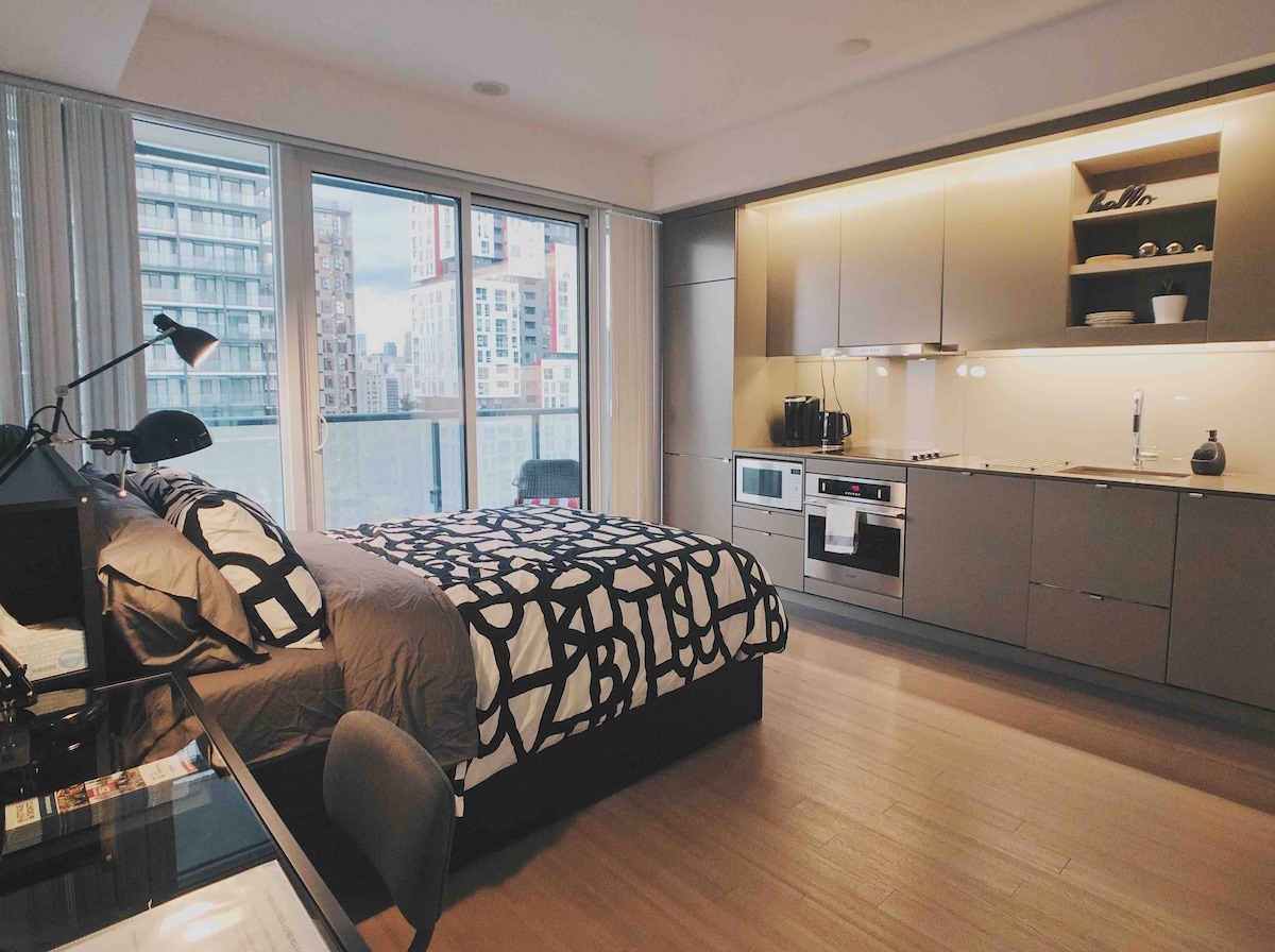 Location, luxury, fun & convenience! Entertainment & Fashion District of Toronto! Meticulously cleaned, freshly-prepared one-of-a-kind condo offers bright, inspiring spaces & a dedicated workspace for your comfort. Trust to get exactly what you see in the listing—no surprises! Having honed higher hospitality standards from industry-leading hotels, I aim to make this your perfect home away from home. Stay in a 100% Airbnb-friendly building—A spaceship! Also do check out the guidebook!