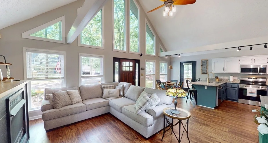 It's Game Time! Est. in 2025 is our exquisite waterfront home designed for fun. When first arriving, you will see our large glass garage doors that open up into the family game room with games such as: Skee ball, shuffleboard, arcade games & MORE! Play on our custom 11x30 ft Putting Green or walk out to the upper deck through our sliding French doors to enjoy the gorgeous views of Wilson Lake. Take our paddle boat out or enjoy swimming off our pier. Theres plenty to do here at The Gamers Garage!
