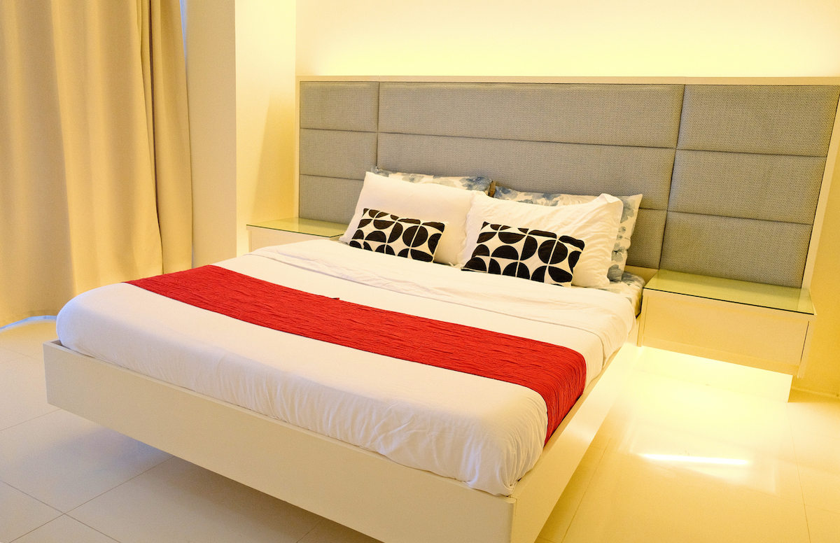 Surround yourself with style in this industrial aesthetic space. Located on the 3rd floor of Myna A condominium with elevator access, this 2-bedroom unit is perfect for family and group outings. Relax, unwind, and enjoy your stay with a scenic view of the lagoon, forest, and mountain. The place is spacious and can accommodate a maximum of 9 people.