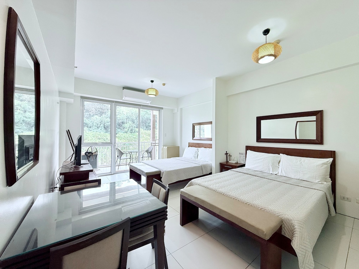 You’ll love my place because of the ambiance & cleanliness. My place is good for families (with kids). My place has a hotel vibe with cozy queen size beds (3 in total). It has a provision for a working desk. To provide entertainment & relaxation while inside the apartment, we have a television with cable channels. The place has a balcony (with a mountain view) which can be used as place for dining & socialization. The kitchen has a ref, microwave, cooking range, among others.