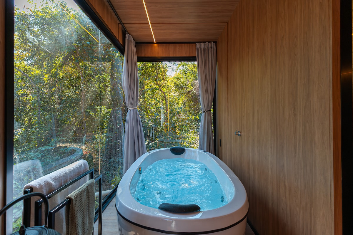 Entre no embalo dos sons da natureza ao ficar neste lugar único. O Jardim Woo por si só já é um paraíso! É uma RPPN, área de preservação ambiental no meio do cerrado! Em meio a uma vista incrível permite ao hóspede acesso exclusivo ao córrego barriguda! Da cama do bangalô ou da jacuzzi você contempla a Serra dos Pireneus e a cachoeira da Dhyana, simplesmente linda e exuberante! Somos um bangalô de contêiner de 30mts2 completo em conforto e sofisticação! Total imersão na natureza!