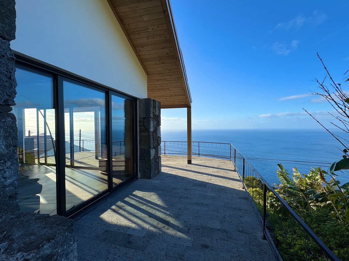 Would you like to live in a stone cottage, rustic, but with a modern ambiance and interior, comfortable, romantic, ideal for two with stunning views? You're in the right place, it's here. There is a deck with lounge chairs, a stone barbecue, the full view of the island of São Jorge and the canal. From its left side, the cliffs of the parishes of São Roque, Praínha and Santo Amaro do Pico, crashing waves and fluttering birds; a sunset to fall in love with… This house is part of a small family owned resort, where there is a restaurant called Magma, a grocery store, a yoga room and an heated swimming pool. The living room has glass sliding door that open the interior nature and the views. What are you waiting for?