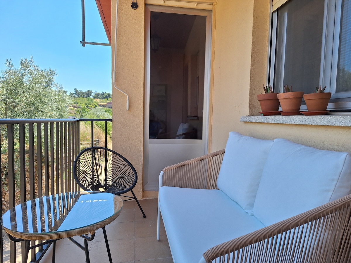 Decoração simples e moderna (guarda roupa, gavetas, mesa e cadeiras, terraço com mesa guarda-sol e cadeiras). Pequeno espaço de cozinha com forno, microondas, fogão e frigorífico. Casa de banho completa. Alguns utensílios de cozinha, como talheres e louça. Tábua, ferro de engomar, e televisão. Irei receber os hóspedes pessoalmente, falo inglês e alemão.