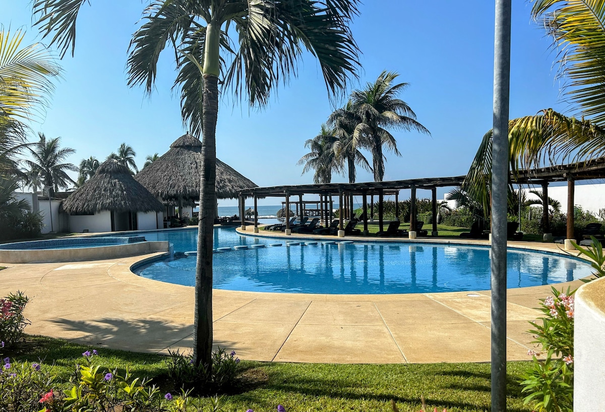 Departamento ideal para pasar fin de semana. 2 habitaciones 2 baños. cocineta. Vista al mar. En áreas comunes esta el acceso a playa, estacionamiento, cancha de tenis, jacuzzi, albercas y (cardio) gym. Si gusta de las actividades al aire libre cuenta con cancha de tenis y un área completamente segura de 4 km para correr o salir a caminar. Restaurante junto a la alberca con horario de 8am a 8pm