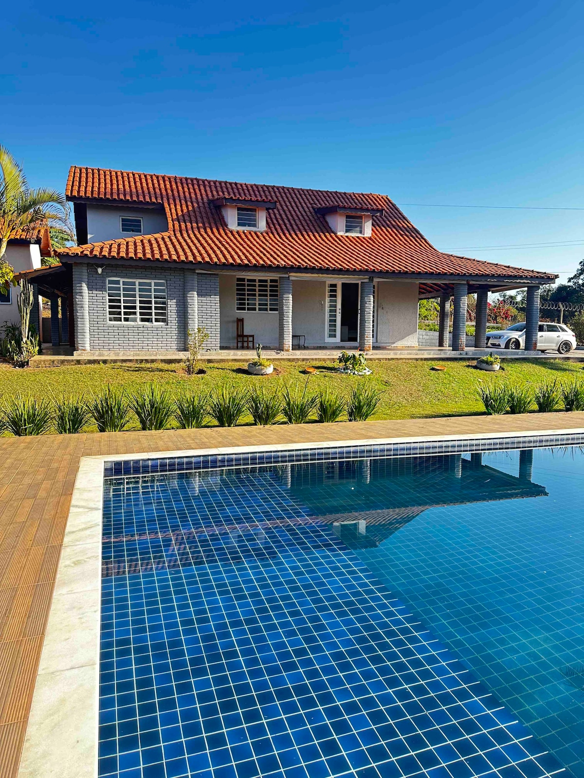Casa aconchegante com piscina e churrasqueira.